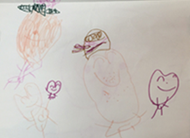 紙以外に描いた絵 チョークで黒板に書いた絵や、砂場、マグネットボードに描いた絵など