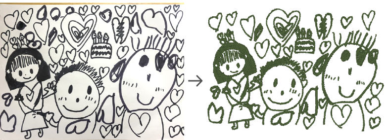 お送りいただいた絵や文字は、刺繍用に加工させていただきます。モチーフが小さすぎる・線が薄すぎる・数が多すぎるなどの場合、正確な再現や範囲内の刺繍が難しいため、できるだけシンプルなモチーフがおすすめです。