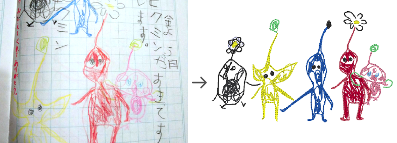 切り貼りした絵・工作した絵平面の工作したもの(切り貼りした絵、折り紙など)の場合は、編集して対応できます