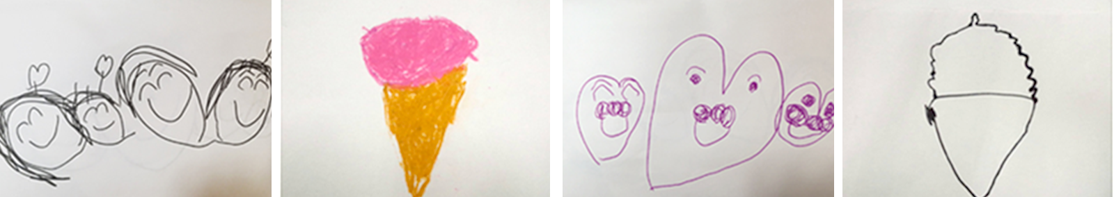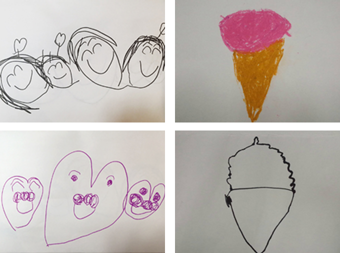 紙以外に描いた絵 チョークで黒板に書いた絵や、砂場、マグネットボードに描いた絵など